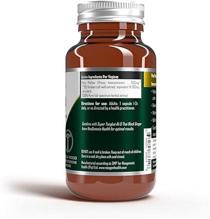 - 20:1 Extract Ratio: Potent concentration, providing the equivalent of 16,000mg of dried pine pollen in a 800mg dose.