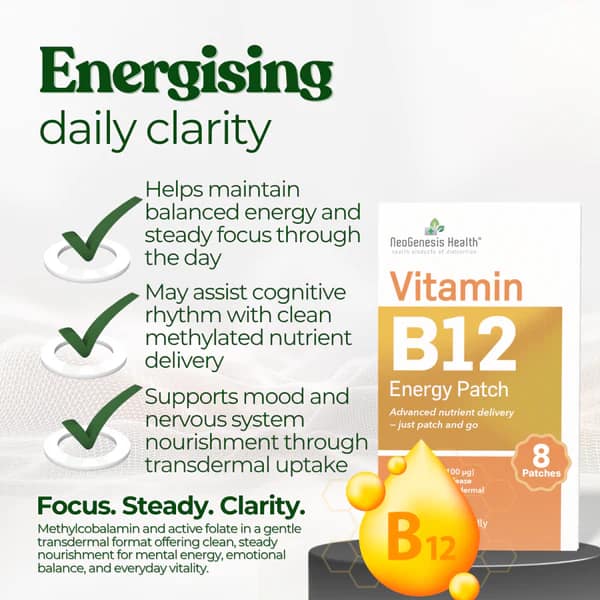 Say goodbye to ineffective B12 pills and synthetic folic acid. Our transdermal patch is designed for maximum absorption, using nutrient forms that bypass the gut and go straight to work: